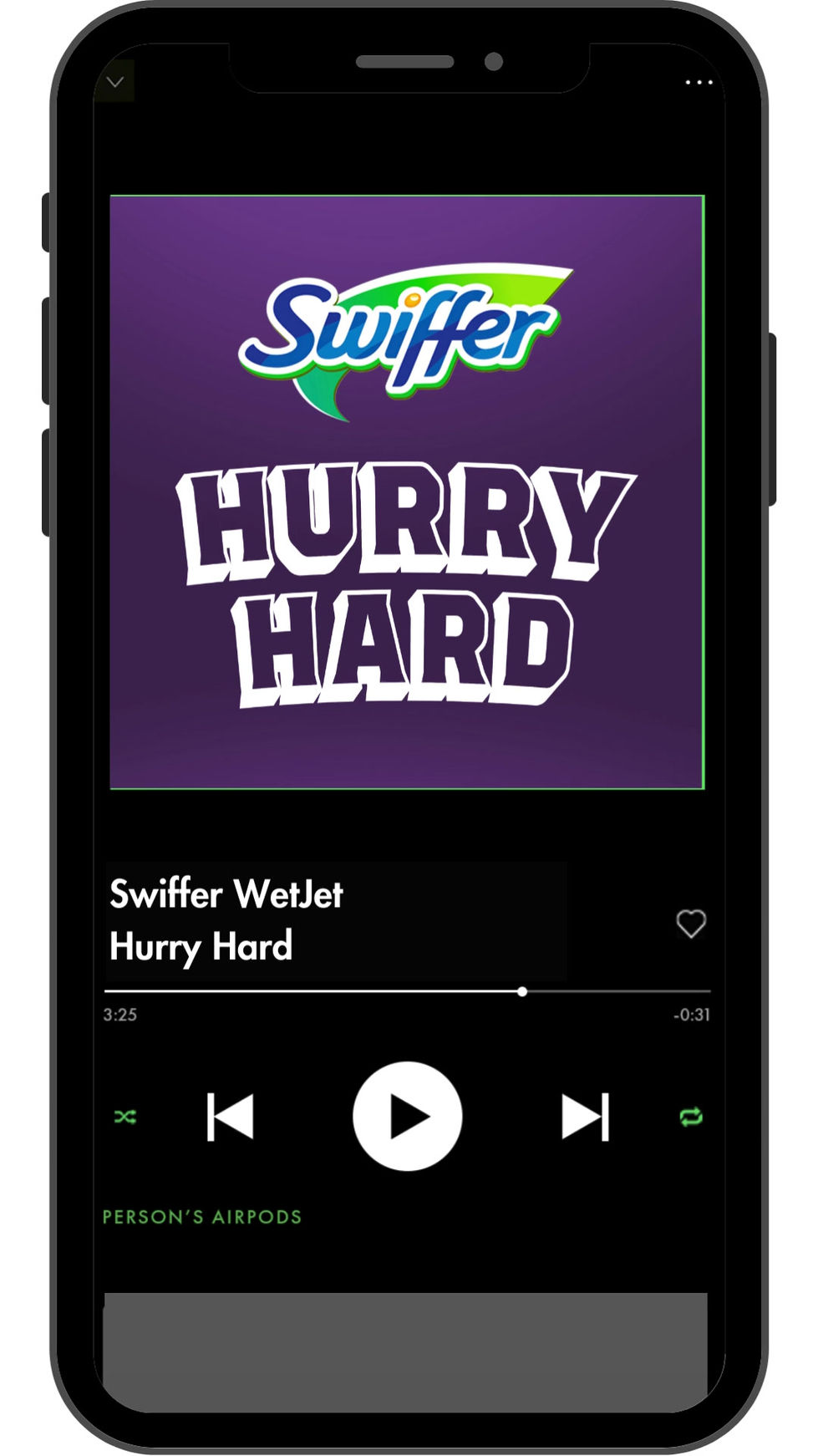 APPROACH: Hurry Hard. Swiffer WetJets are similar in design to Curling brooms; most young folks living away for the first time only clean when company is coming over, a date, parents, friends. So cleaning is an intense and mad dash; when the clock is ticking, Hurry Hard.